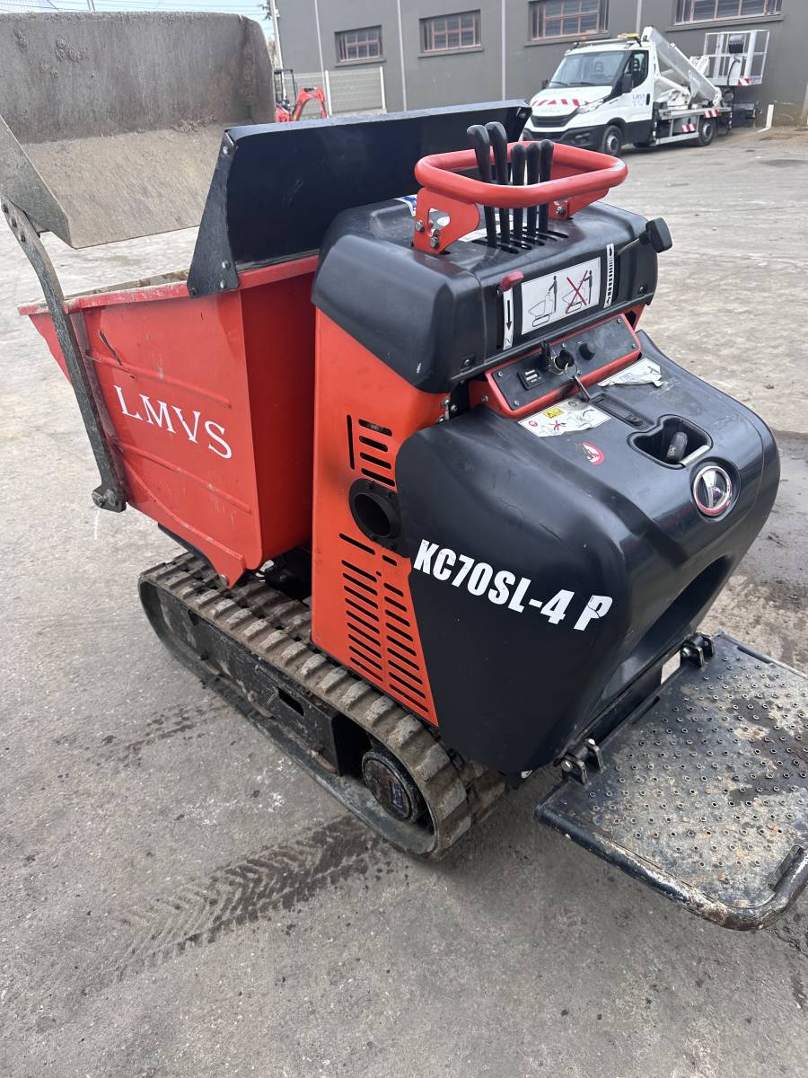 Les chenilles rendent le déplacement facile sur des terrains accidentés, boueux, sableux et en pente. Son godet attaché permet l'auto chargement efficace de la brouette. Le mécanisme de basculement hydraulique est très pratique pour charger et décharger en toute simplicité.
