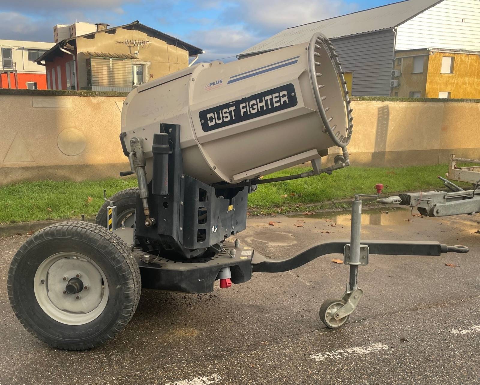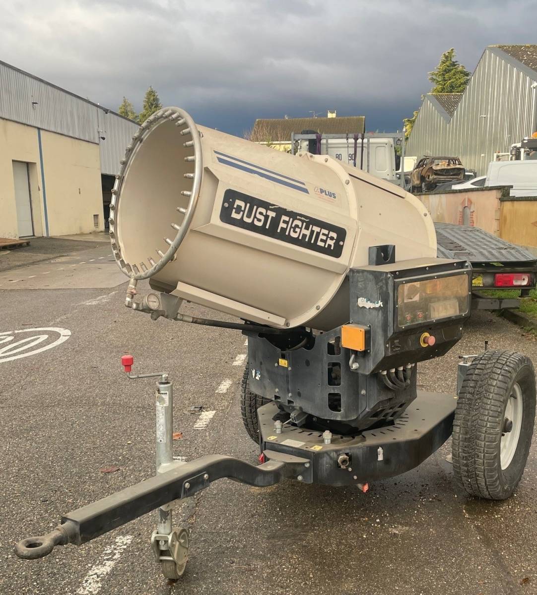 Ce brumisateur d'air est conçu pour réduire les poussières en suspension dans l'atmosphère lors de vos travaux de construction, de démolition ou de terrassement. Il projette de fines gouttelettes d'eau dans l'air, qui captent les particules de poussière et les font retomber au sol, améliorant ainsi la qualité de l'air et la visibilité sur le chantier.